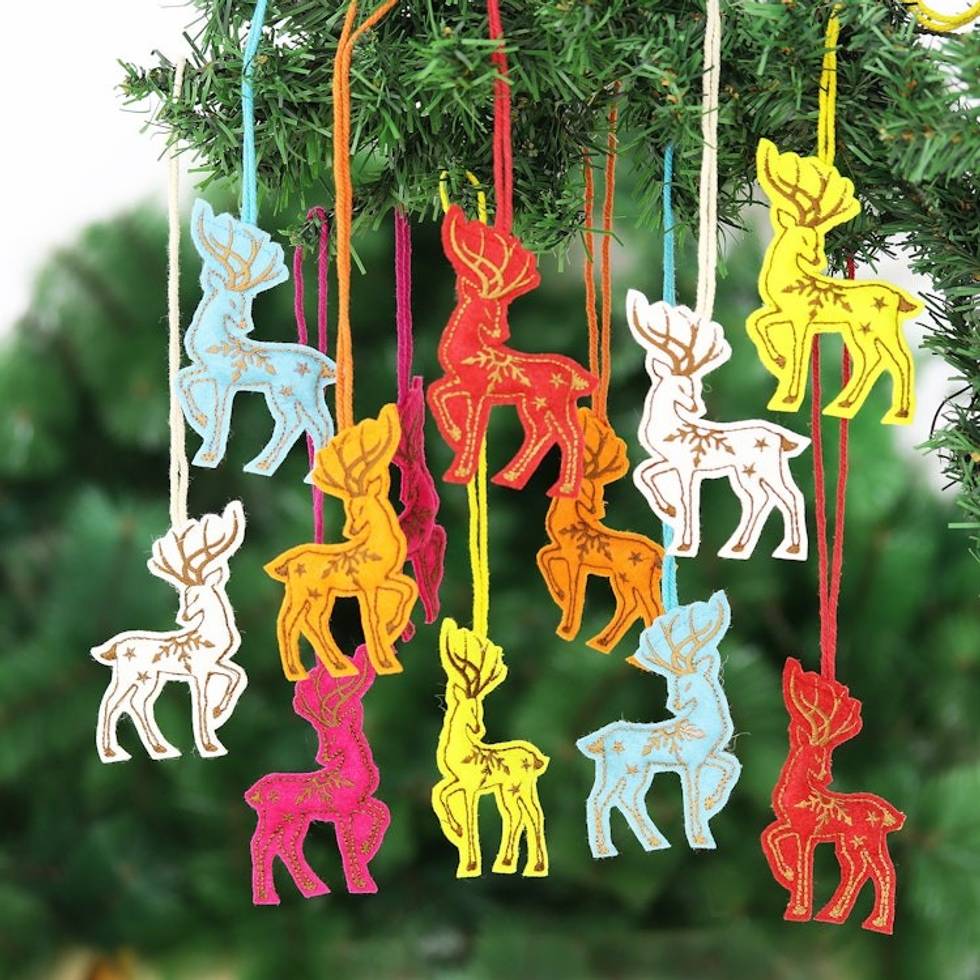 Embroidered Wool Reindeer Holiday Ornaments Set of 12 'Reindeer Dance' Item ID: 2669956055