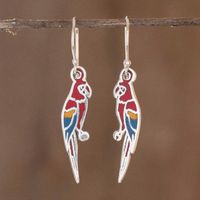 Enameled Sterling Silver Costa Rican Macaw Earrings 'Scarlet Macaws' Item ID: 2669933590
