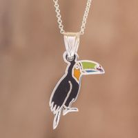 Enameled Sterling Silver Costa Rican Toucan Pendant Necklace 'Colorful Toucan' Item ID: 2671776633