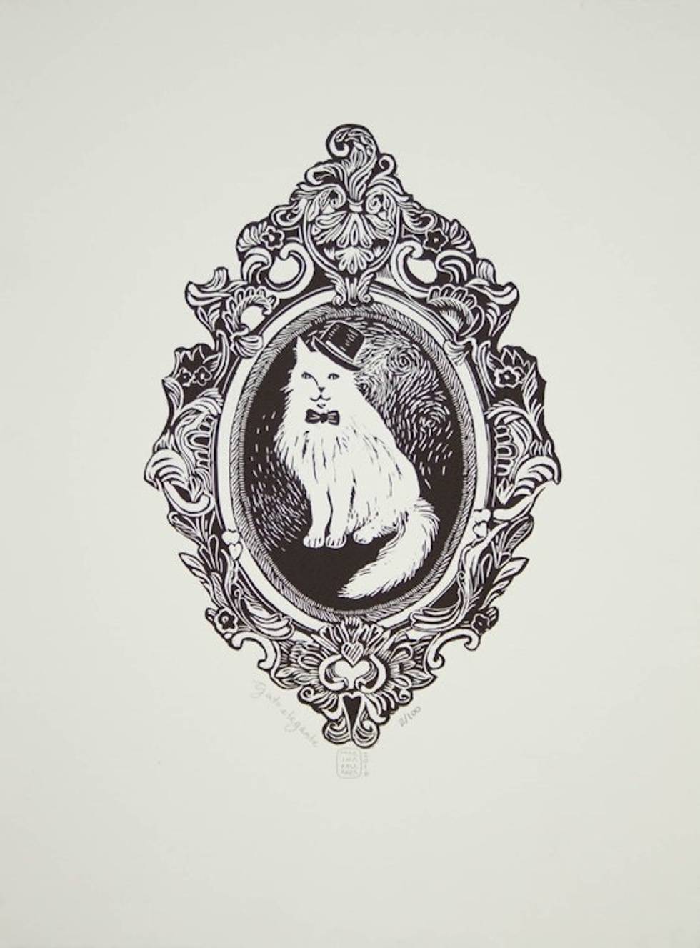 Etched Print of Cat with Top Hat Signed Limited Edition 'Elegant Cat' Item ID: 2671808764