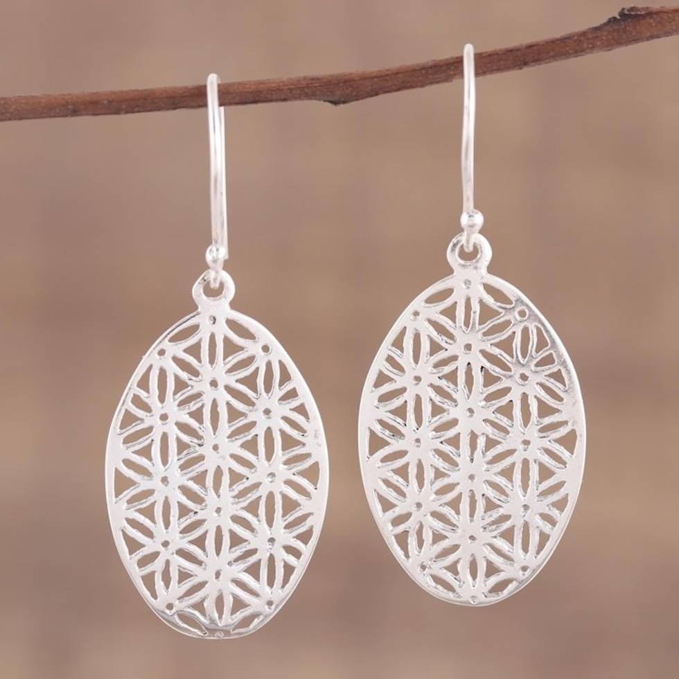 Everyday Classic Oval Sterling Silver Dangle Earrings 'Matrix Web' Item ID: 2671791896