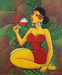 "Spice brings health and life to any soul, thanks to the wise Javanese traditions and nature. Jamu, a traditional medicine from Indonesia, is the protagonist of this expressionist painting by artist Harman. Portraying a woman drinking the ancient beverage, this acrylic composition reunites nature and culture in one piece, creating a captivating aura around each element.