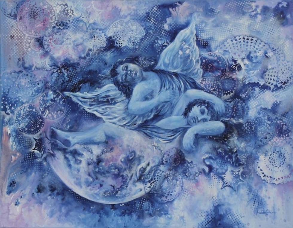 Expressionist Angel Painting in Blue from Brazil 'The Guardians' Item ID: 2669890771