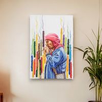 "Memories from ancestors offer a glimpse of the Mayan grandeur. Oil and liquid glass allow Guatemalan artist Carolina Cabrera to capture the country's pride in the ancient Maya world, paying homage to her heritage. The artist adds a symbolic message through the diverse elements composing this expressionist painting. The man at the center represents Guatemala's people, whereas the fuming candles appear to create a symphony of colors that depict the Maya's cultural richness.