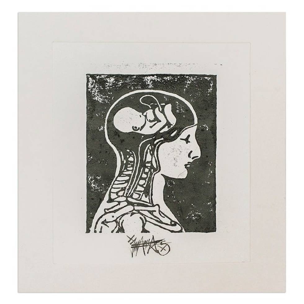 Expressionist Xylograph Print of X-Ray of Man and Fetus 'Conception' Item ID: 2671770200