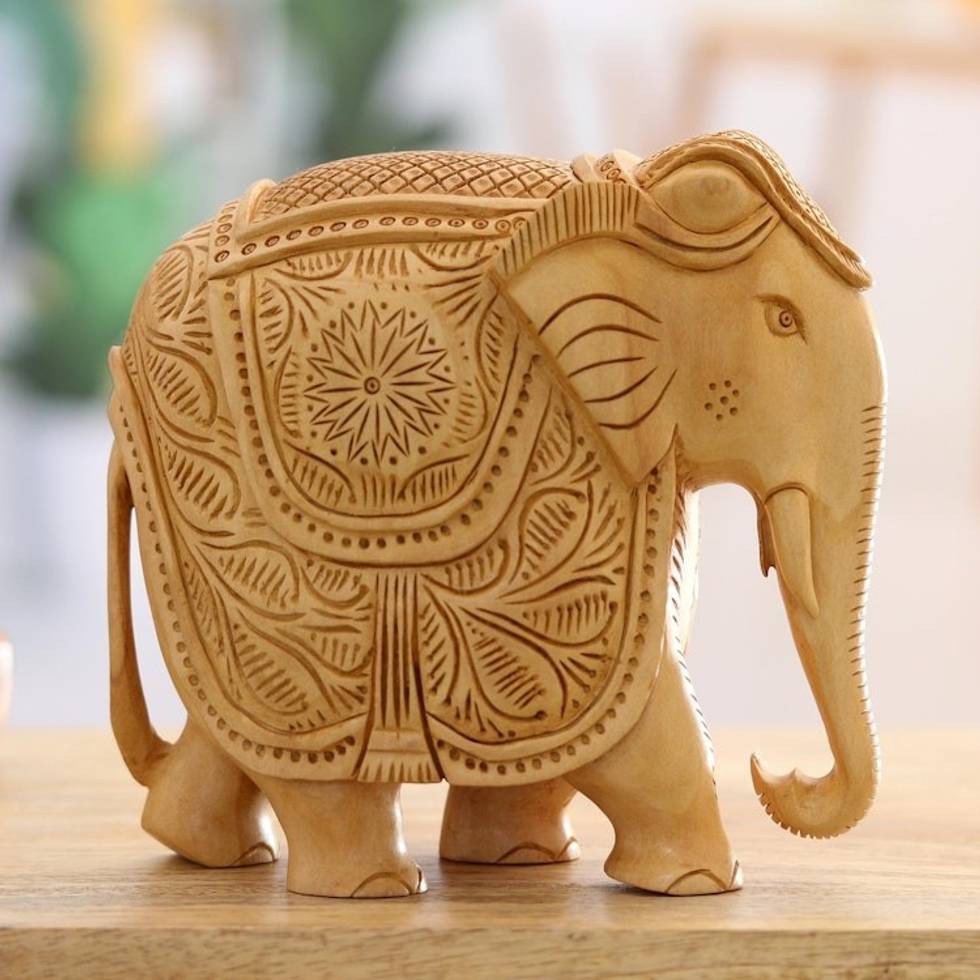 Exquisite Elephant Wood Figurine Carved in India 'Grandiose Elephant' Item ID: 2671787343