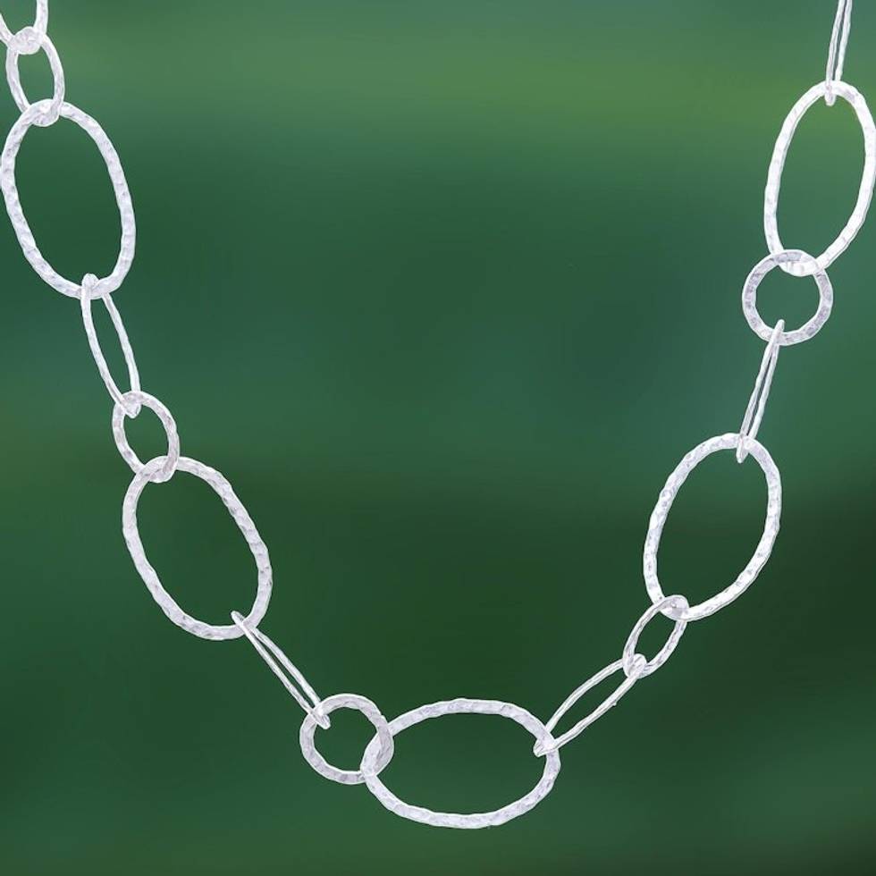 Extra Long 950 Silver Hammered Link Necklace 'Lanna Links' Item ID: 2671641159