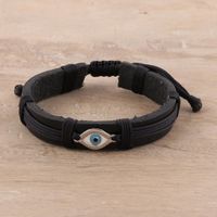 Eye Motif Sterling Silver and Leather Wristband Bracelet 'Alluring Eye' Item ID: 2669956333