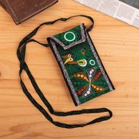 The green color is so vibrant and the embroidery is beautiful. It comes with a lone strap if one wants to use as a mini purse. I really like it. Thank you so very much. Your work is very beautiful.
