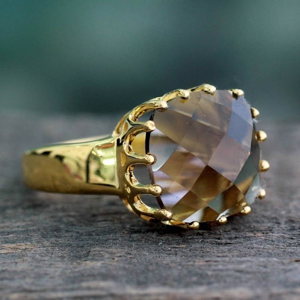 Faceted 4 Ct Smoky Quartz and Vermeil Ring from India 'Spell of Endurance' Item ID: 2671655692
