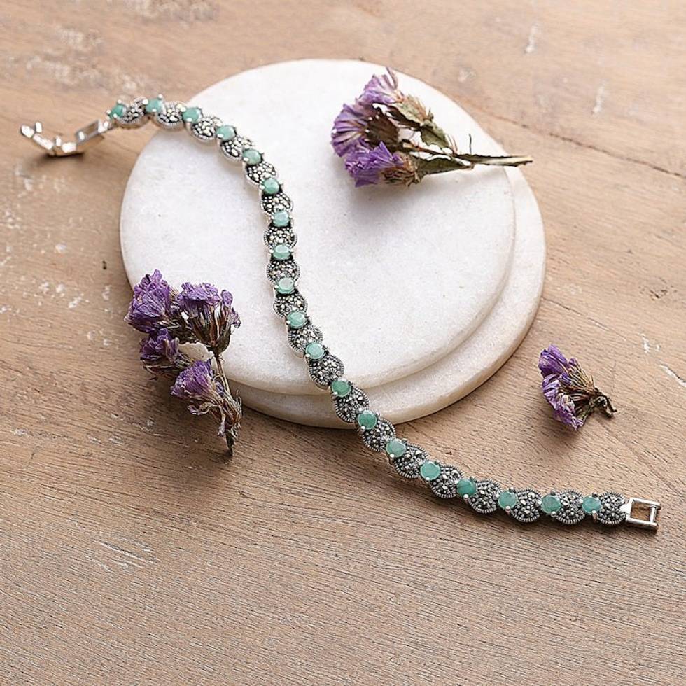 Faceted 7-Carat Marcasite and Emerald Link Bracelet 'Everlasting Majesty' Item ID: 2671781094