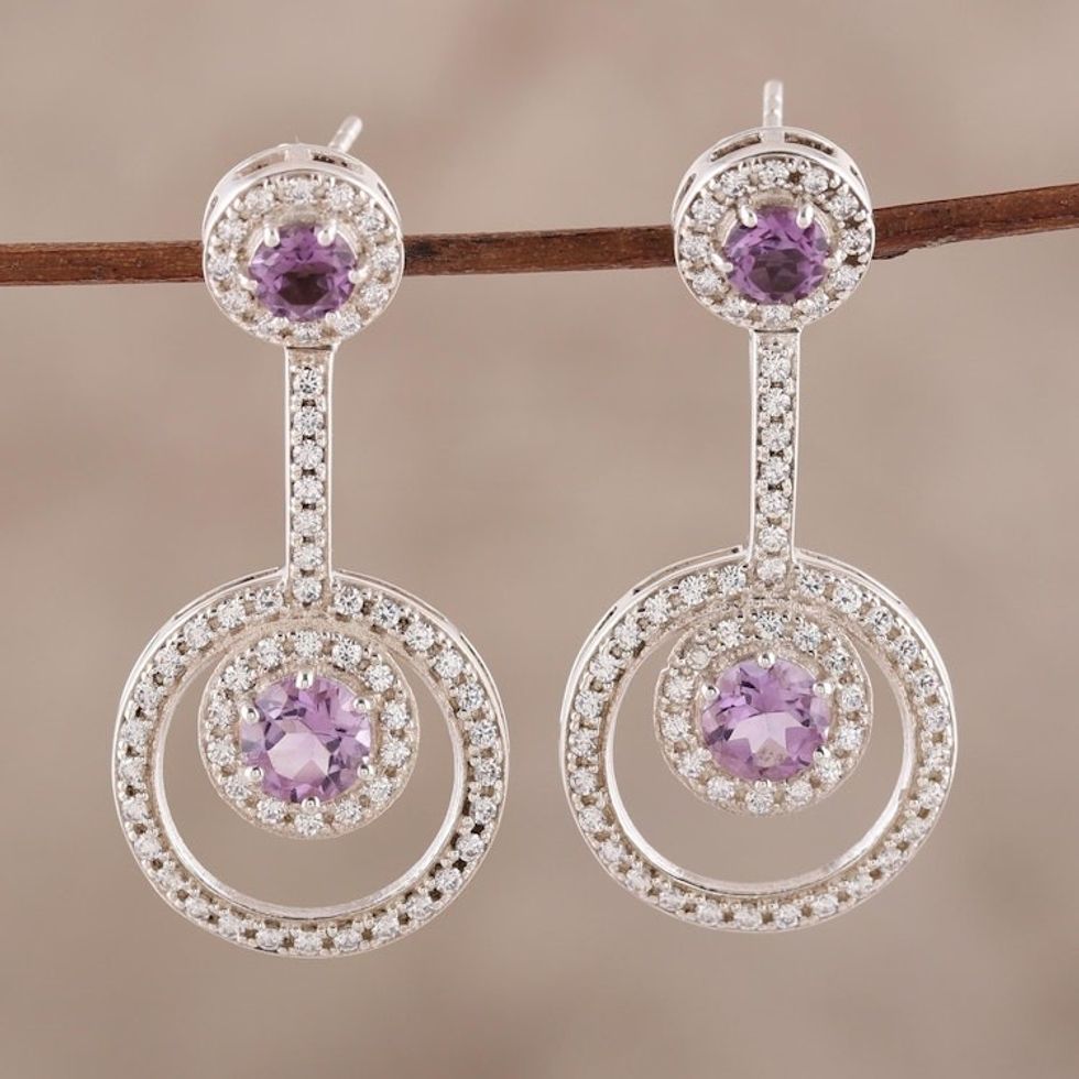 Faceted Amethyst Drop Earrings from India 'Endless Love' Item ID: 2671792460