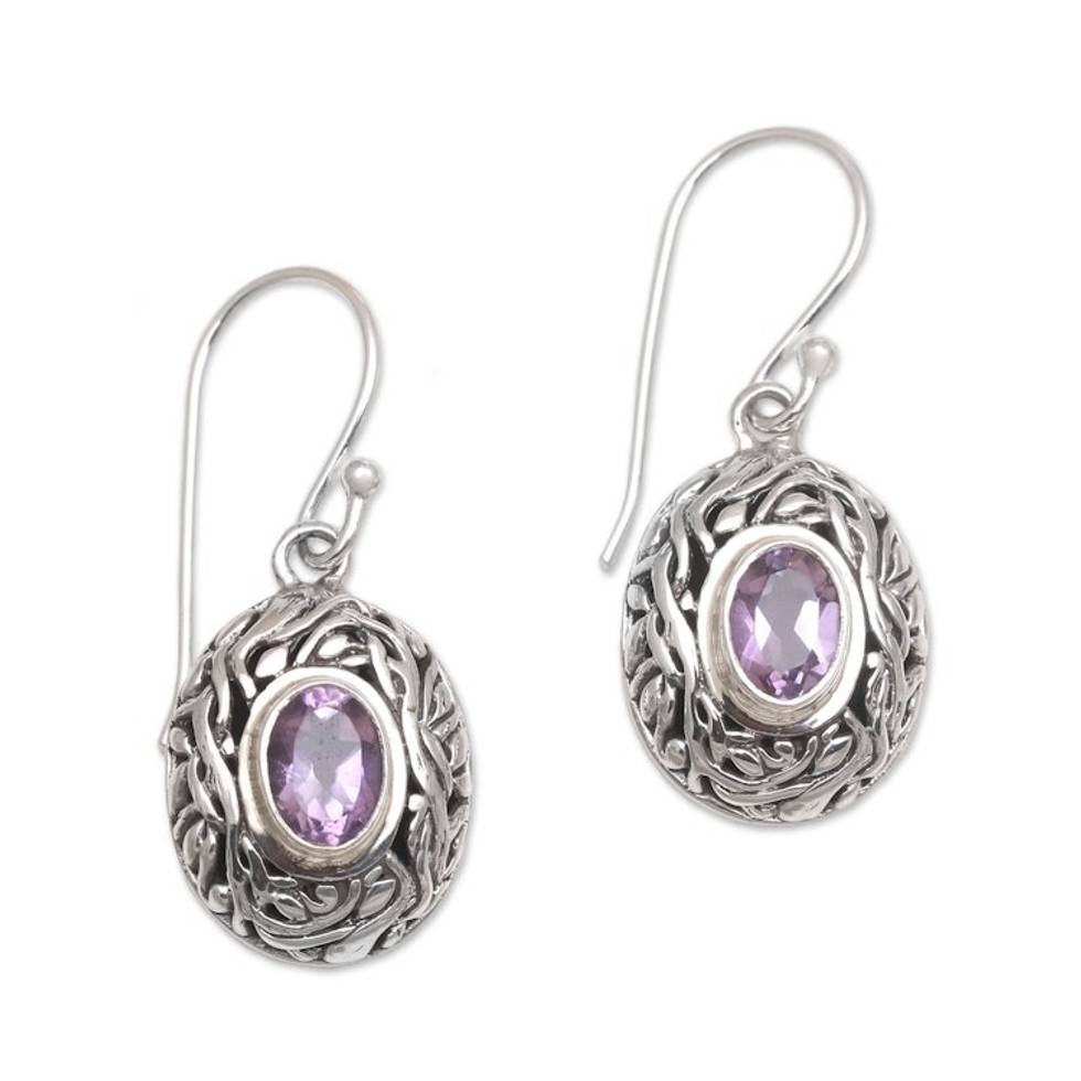 Faceted Amethyst Sterling Silver Vines Dangle Earrings 'Mystery Vines' Item ID: 2671736541