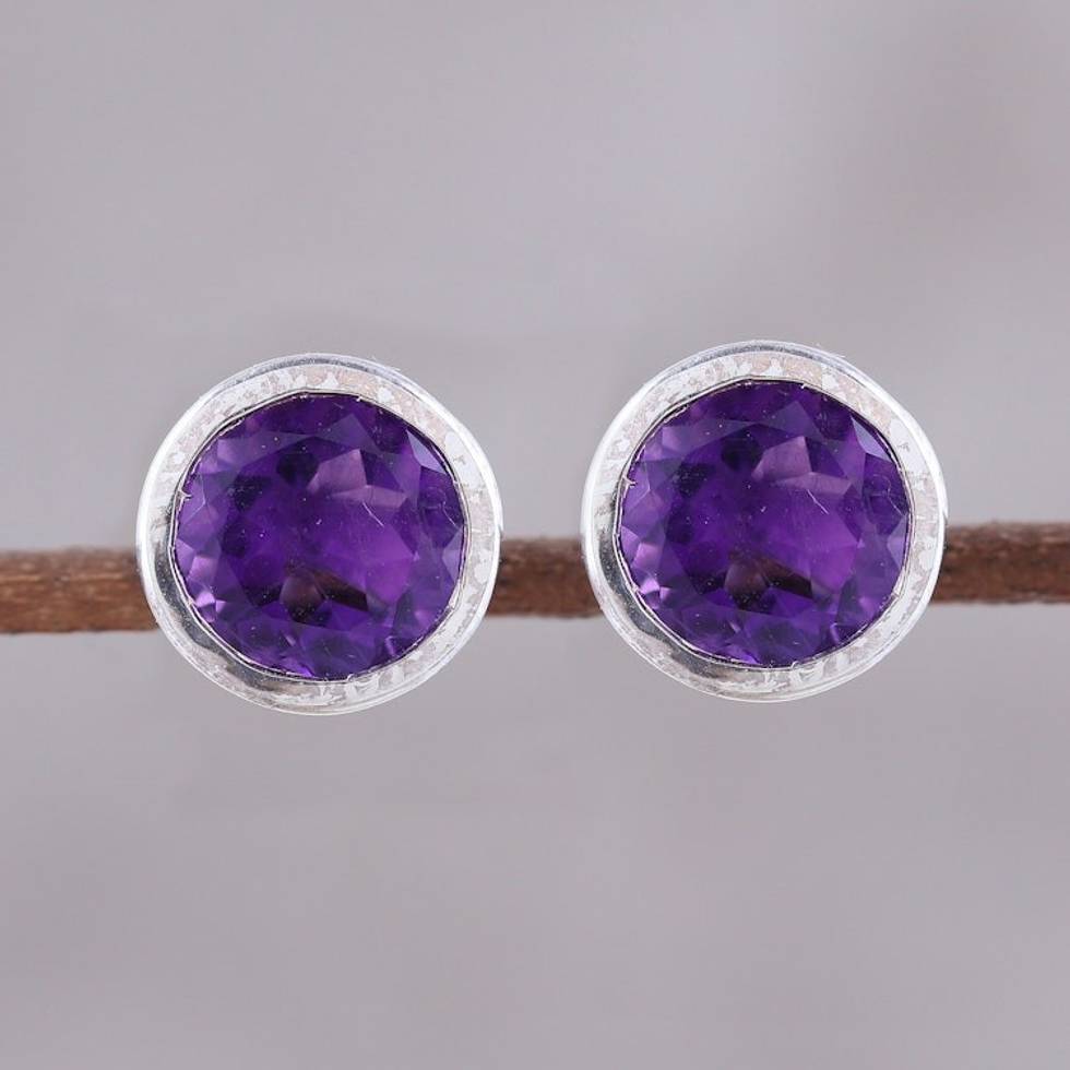 Faceted Amethyst Stud Earrings from India 'Spark of Life' Item ID: 2669943948