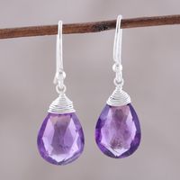Faceted Amethyst Teardrop Sterling Silver Dangle Earrings 'Lavender Joy' Item ID: 2669924234