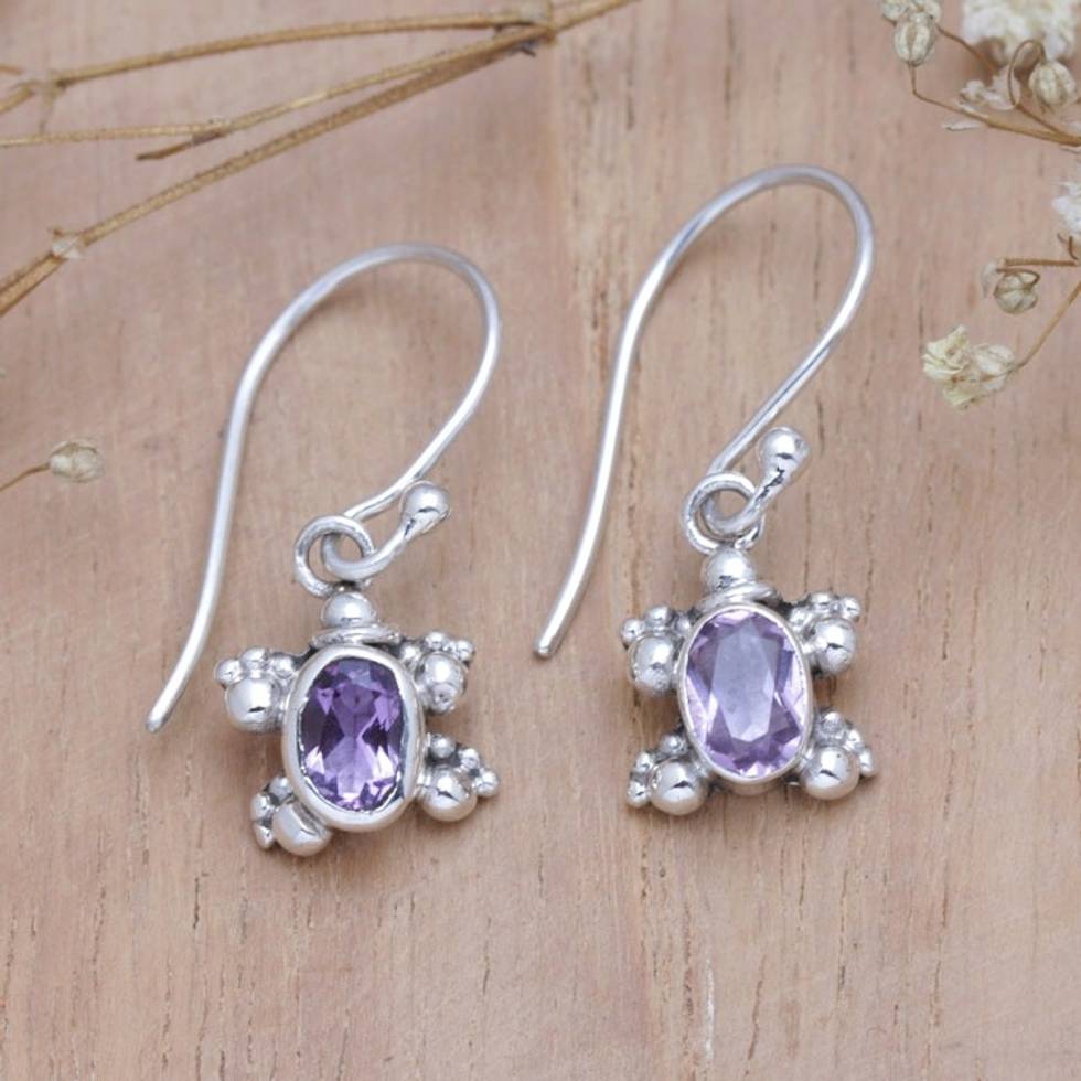 Faceted Amethyst Tortoise Dangle Earrings Crafted in Bali 'Tiny Purple Sage' Item ID: 2671763202
