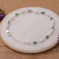 Faceted Aventurine and Cream Cultured Pearl Link Bracelet 'Prosperous Waves' Item ID: 2671625313
