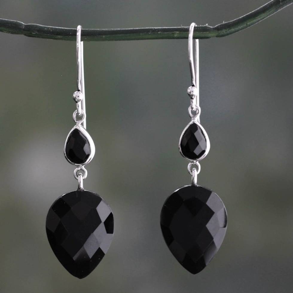 Faceted Black Onyx Dangle Earrings from India 'Delhi Allure' Item ID: 2669924325