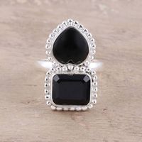 Faceted Black Onyx Sterling Silver Heart Cocktail Ring 'Lady of Delhi' Item ID: 2676665556