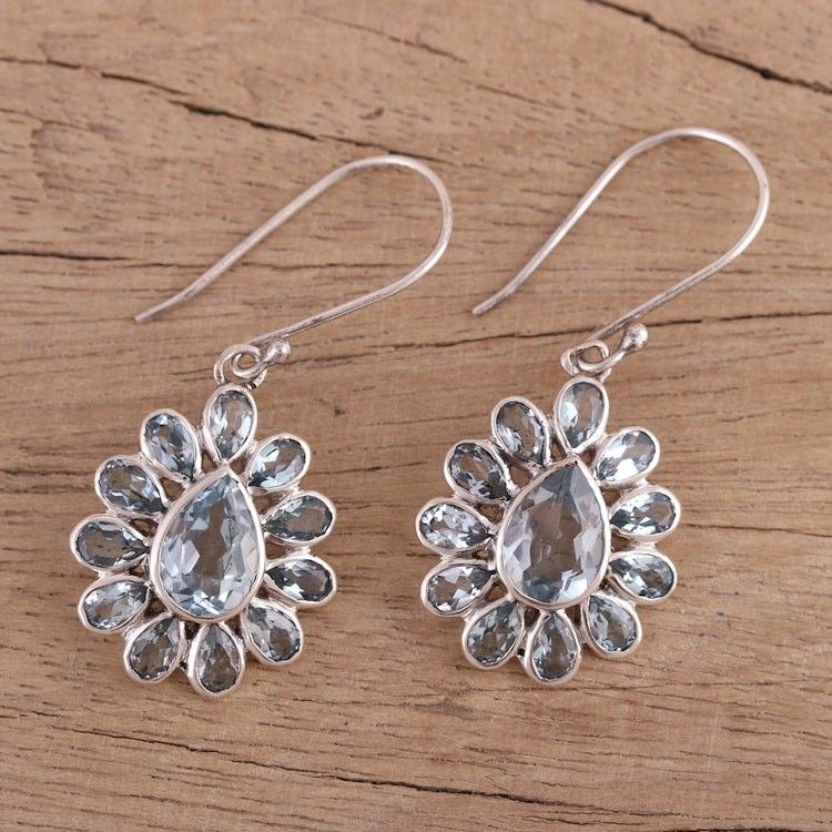 Faceted Blue Topaz Earrings from India 'Blue Glitz' Item ID: 2671621146