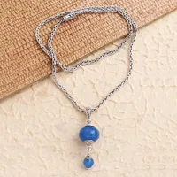Faceted Chalcedony Bead Sterling Silver Pendant Necklace 'Merajan in Blue' Item ID: 2671745274