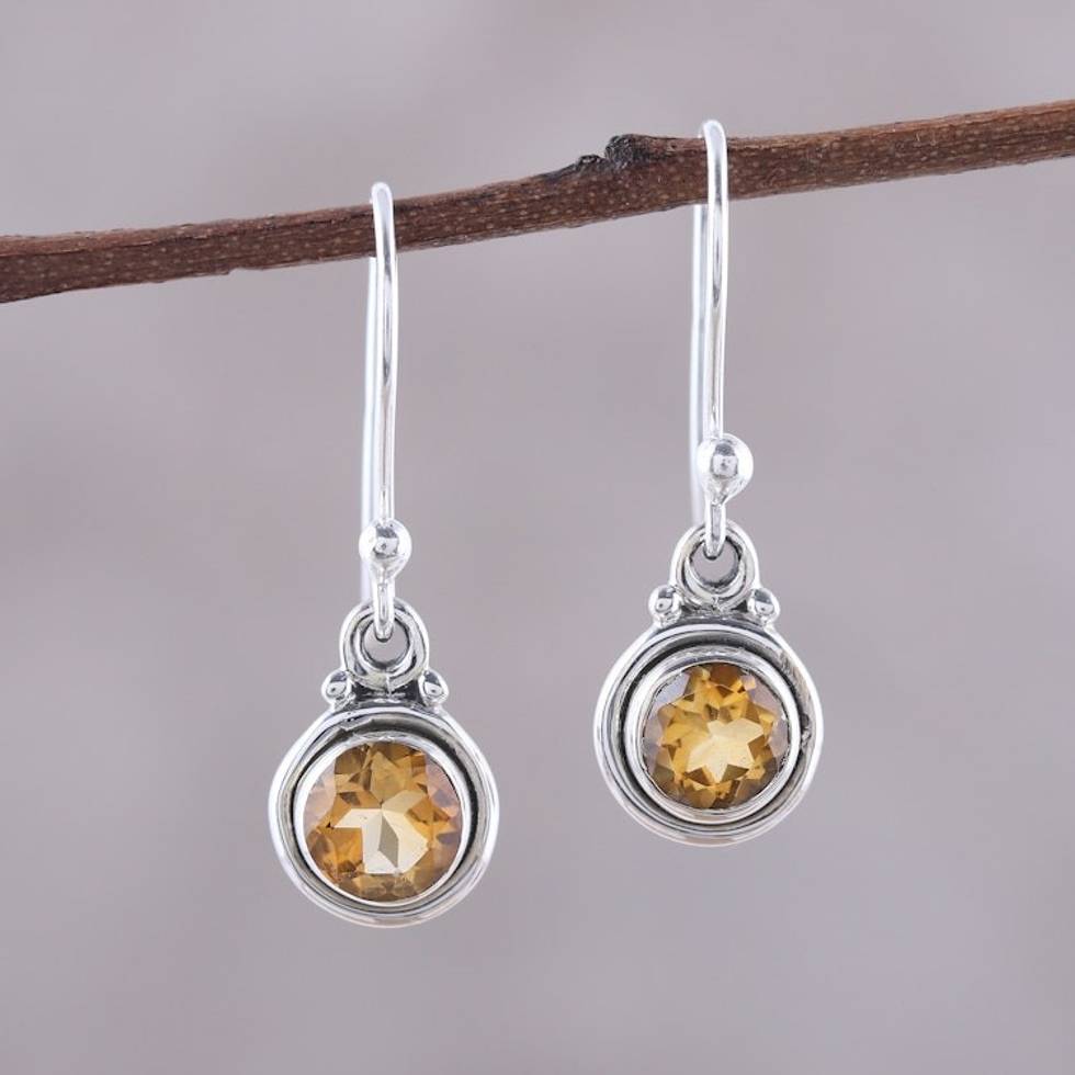 Faceted Citrine Dangle Earrings from India 'Glistening Circles' Item ID: 2669925543