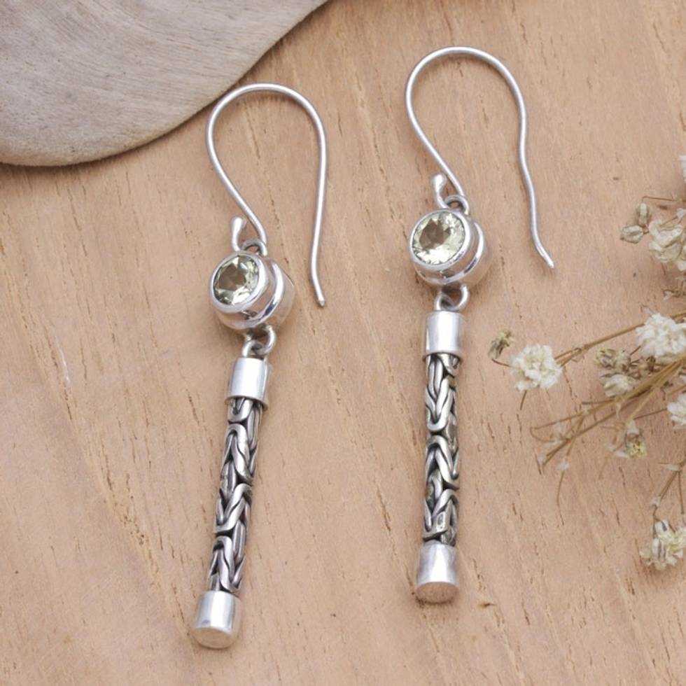 Faceted Citrine Sterling Silver Dangle Earrings from Bali 'Optimistic Journey' Item ID: 2671747805