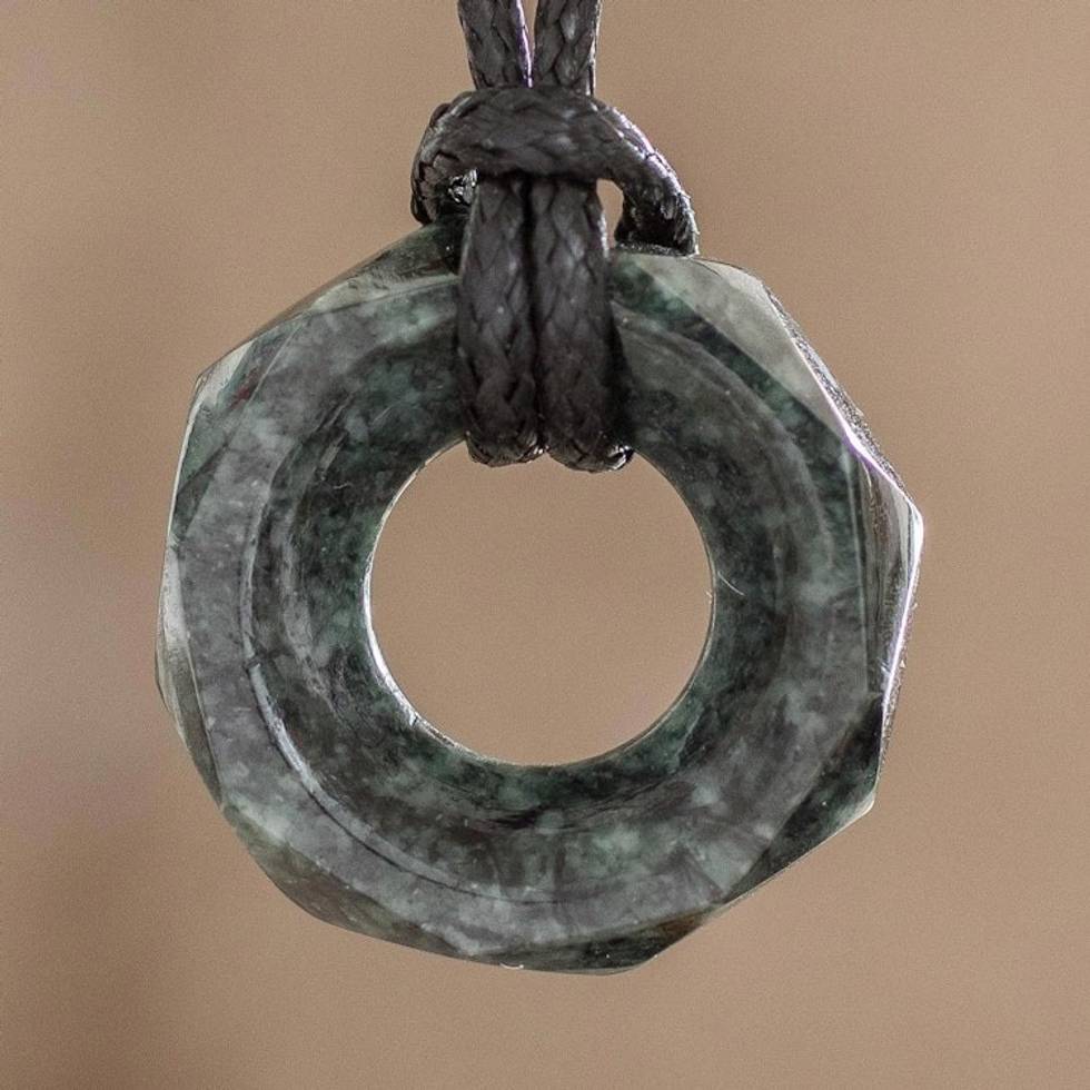 Faceted Dark Green Jade Pendant Necklace from Guatemala 'Dark Green Ancestral Treasure' Item ID: 2671776632
