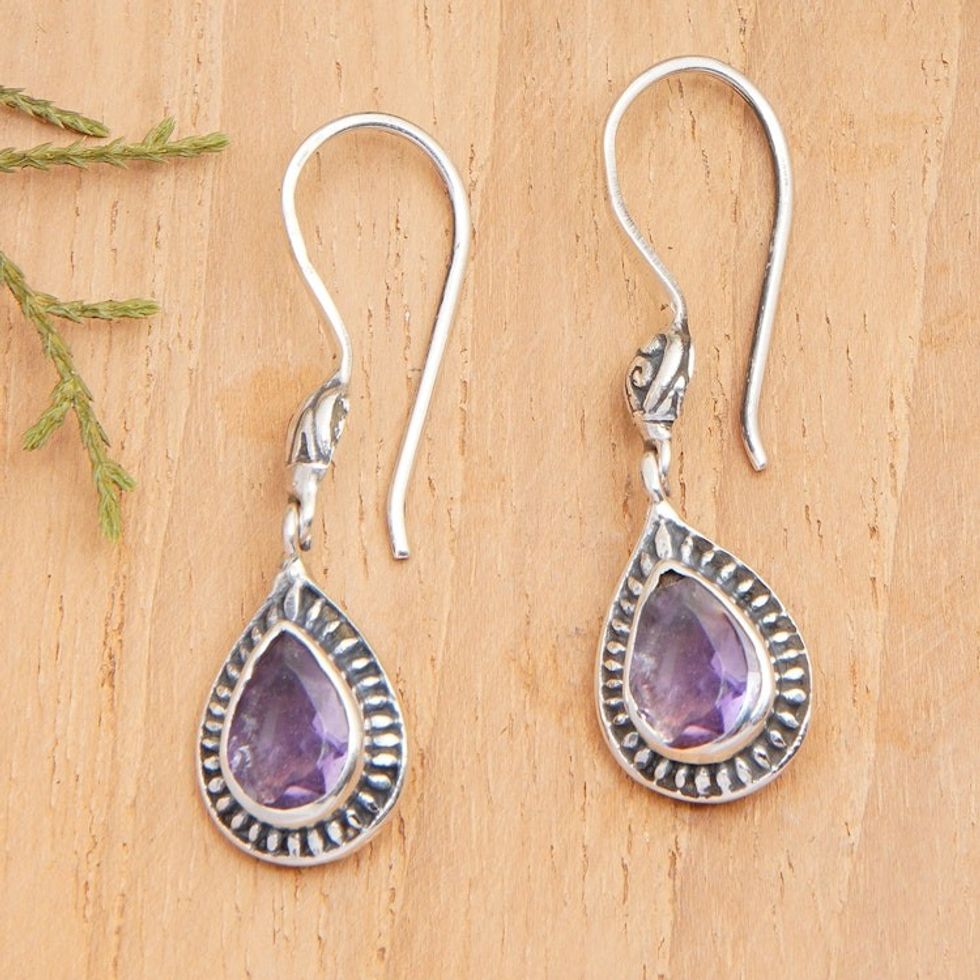 Faceted One-Carat Amethyst Dangle Earrings from Bali 'Gleam of Wisdom' Item ID: 2671764712