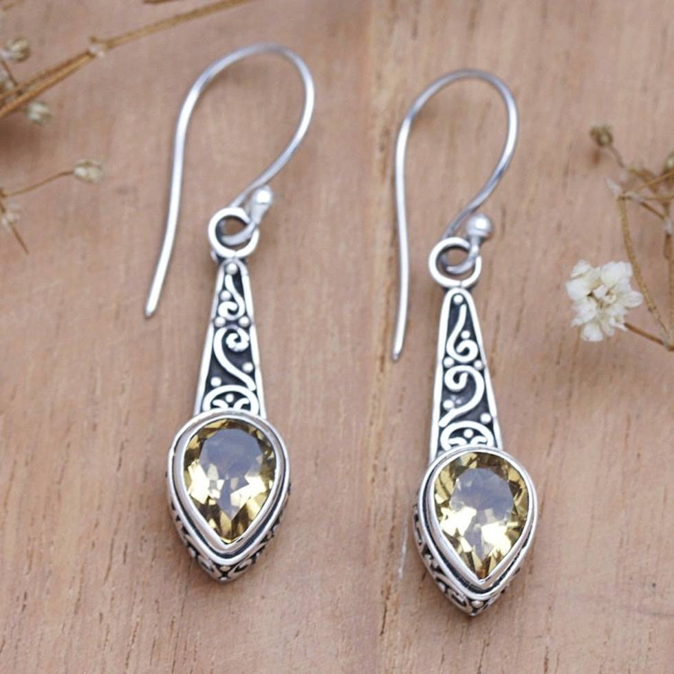 Faceted One-Carat Citrine Dangle Earrings Crafted in Bali 'Yellow Balinese Heaven' Item ID: 2671763411
