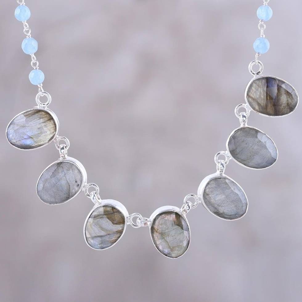 Faceted Oval Labradorite and Chalcedony Pendant Necklace 'Enchanting Mystery' Item ID: 2671792160