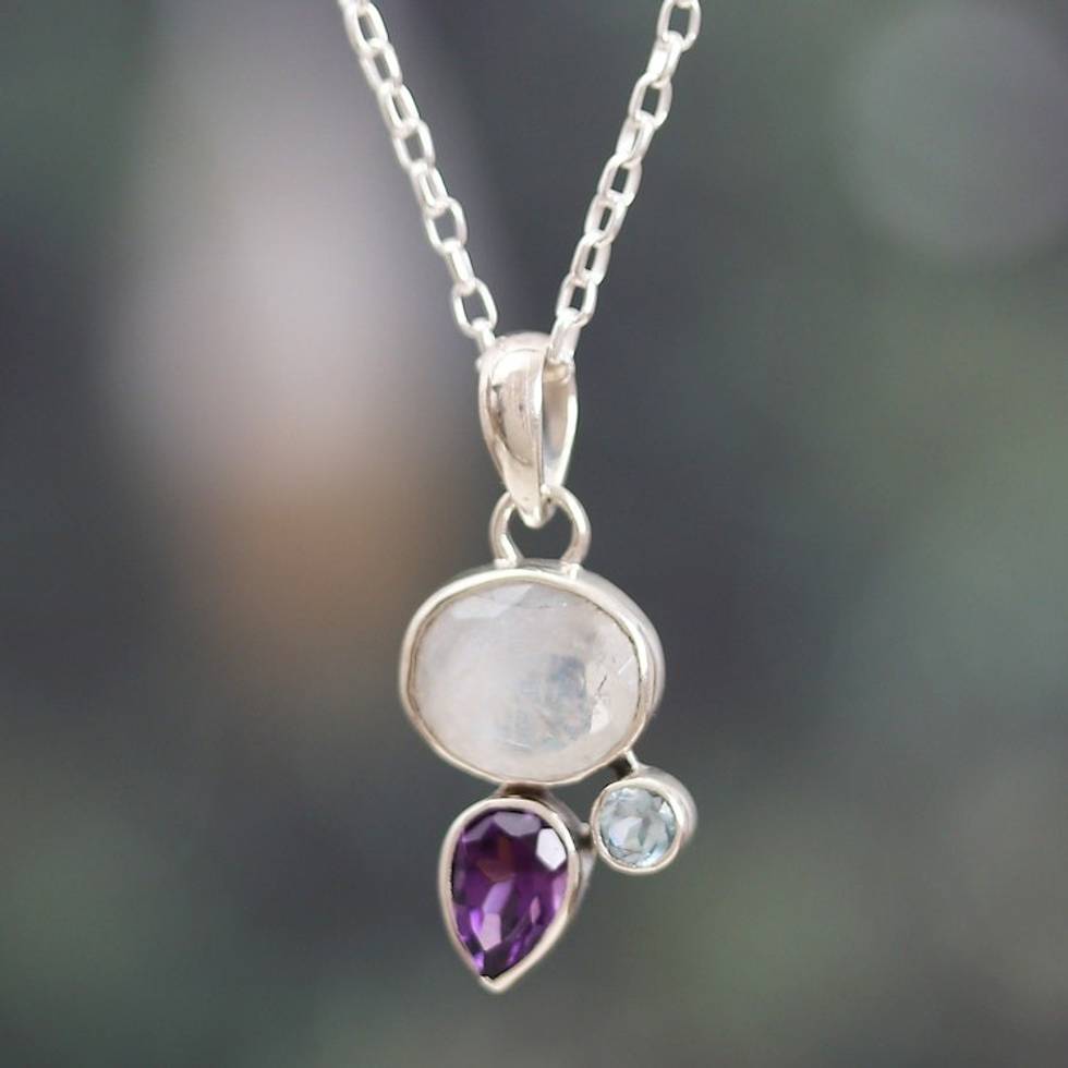 Faceted Six-Carat Multi-Gemstone Pendant Necklace 'Pieces of Harmony' Item ID: 2671782356