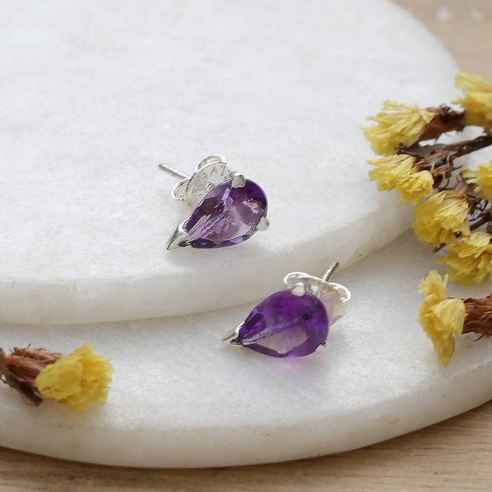 Faceted Three-Carat Amethyst Stud Earrings Crafted in India 'Purple Gleam' Item ID: 2671781507