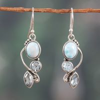 Faceted Three-Carat Blue Topaz and Larimar Dangle Earrings 'Sky Glamour' Item ID: 2671624675