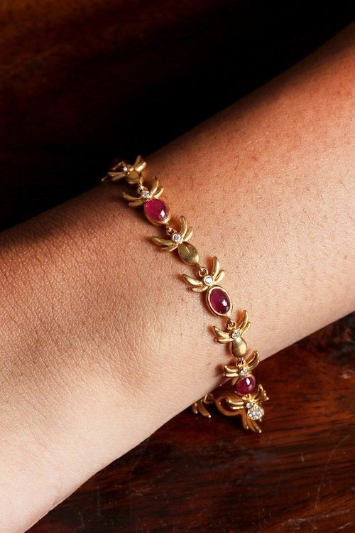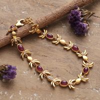 Fair Trade 22k Gold-Plated Ruby and Cubic Zirconia Bracelet 'Capricious Fantasy' Item ID: 2671781093