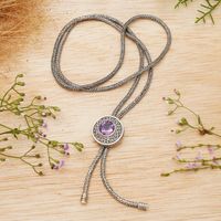 Fair Trade Balinese Faceted 1-Carat Amethyst Lariat Necklace 'Amethyst Sense' Item ID: 2671561685