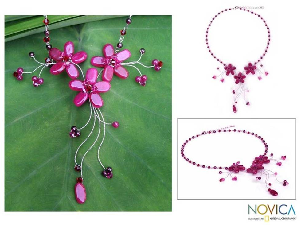 Fair Trade Beaded Quartz Necklace 'Red Rosebud Burst' Item ID: 2671803113