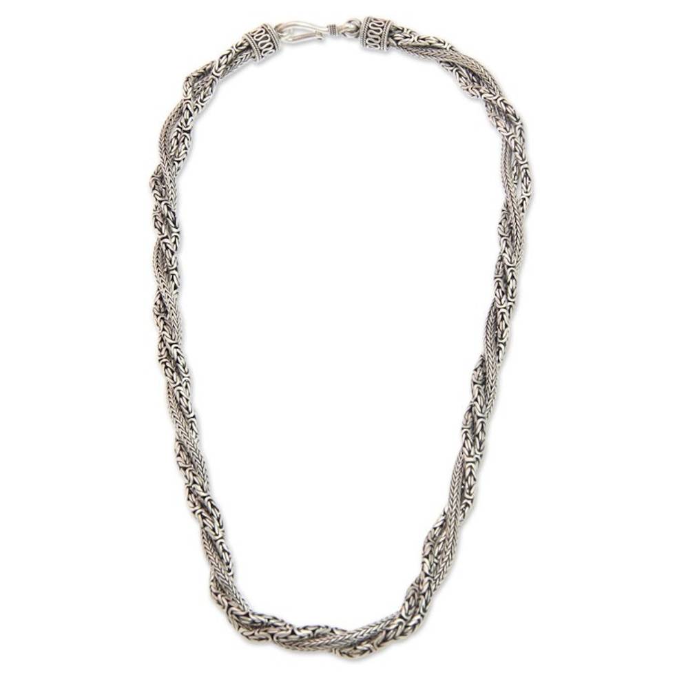 Fair Trade Borobudur Style Sterling Silver Torsade Necklace 'Borobudur Dragon' Item ID: 2671821610