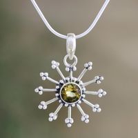 Fair Trade Citrine Sun Necklace in Sterling Silver 'Sunshine Daze' Item ID: 2671794694