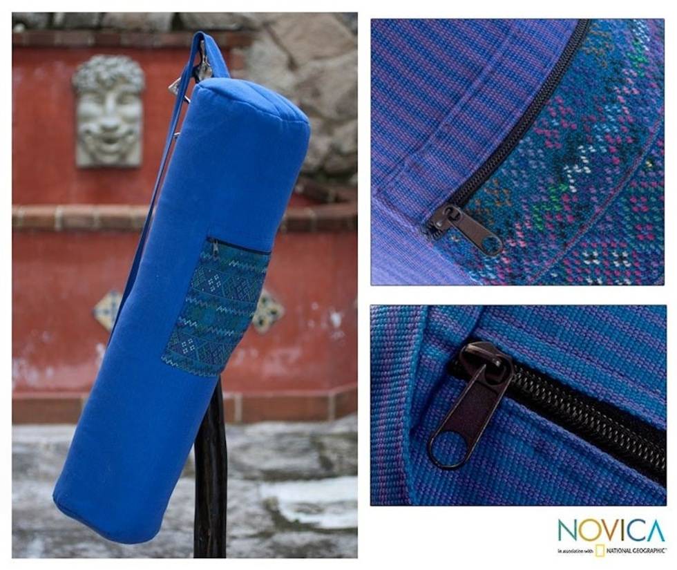 Fair Trade Embroidered Yoga Bag 'Blue Huipil' Item ID: 2671777587