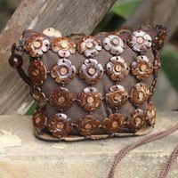 Fair Trade Floral Coconut Shell Shoulder Bag 'Petite Blossoms' Item ID: 2671641496