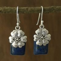 Fair Trade Floral Sterling Silver and Lapis Lazuli Earrings 'Blue Lily' Item ID: 2671619703
