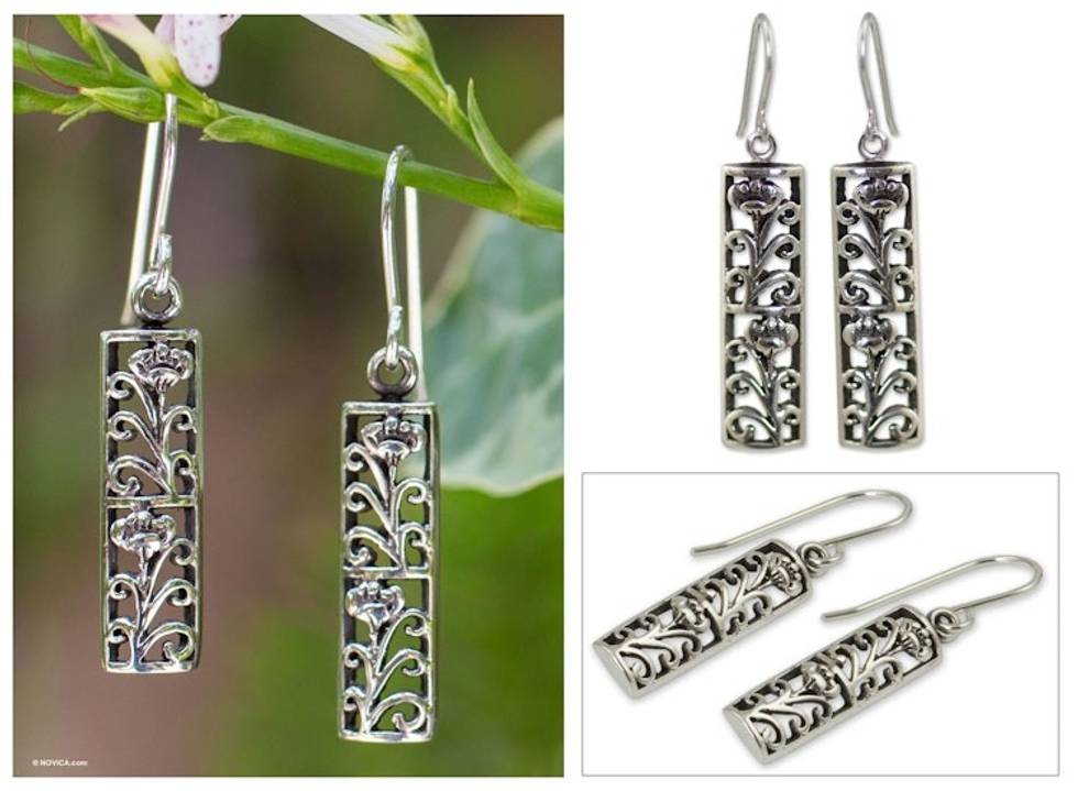 Fair Trade Floral Sterling Silver Dangle Earrings 'Spring Blossoms' Item ID: 2669926180