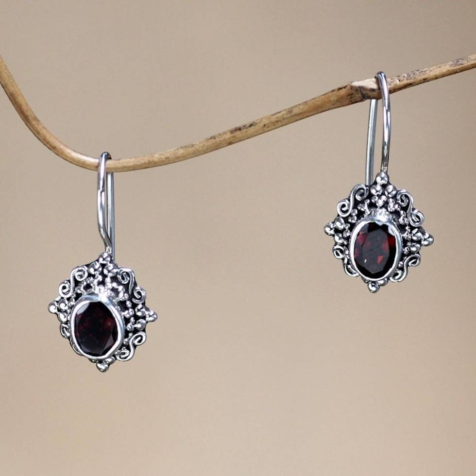 Fair Trade Garnet and Sterling Silver Drop Earrings 'Balinese Elegance' Item ID: 2671821060