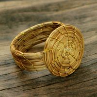 Capim dorado (golden grass) is today the main source of income for many artisans in the region of Jalapão. Buriti palm, another natural treasure, is used to prepare the golden grass by extracting the silken thread used in the sewing (as artisans call the process) of the grass, as well as other materials such as golden threads, natural gemstones, and a variety of natural fibers and seeds.