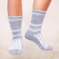 Fair Trade Hand-Knit Thick Slipper Style Grey White Socks 'Himalayan Stars' Item ID: 2669924830