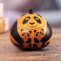 Fair Trade Handcrafted Dried Mate Gourd Panda Decorative Box 'Panda Embrace' Item ID: 2676641562