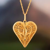 Fair Trade Heart Shaped Gold Plated Filigree Necklace 'Heart of Lace' Item ID: 2671690999