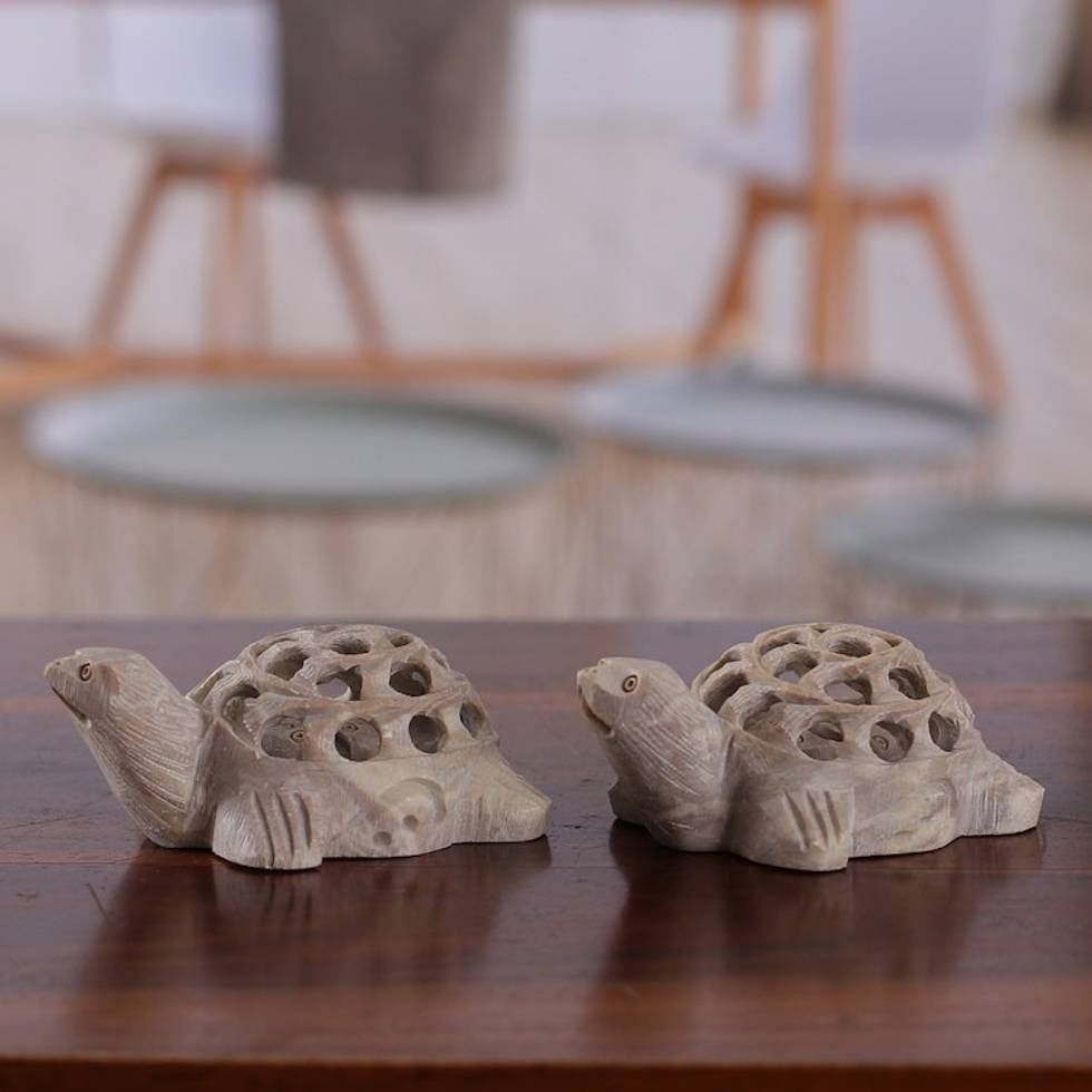 Fair Trade Jali Hand-Carved Turtle Soapstone Figurine Pair 'Turtle Tales' Item ID: 2671781406