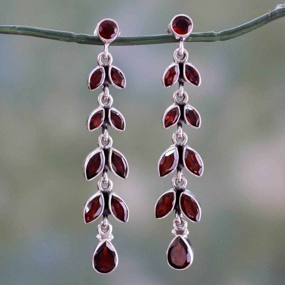 Fair Trade Jewelry Garnet Earrings India 'Crimson Leaves' Item ID: 2671619083